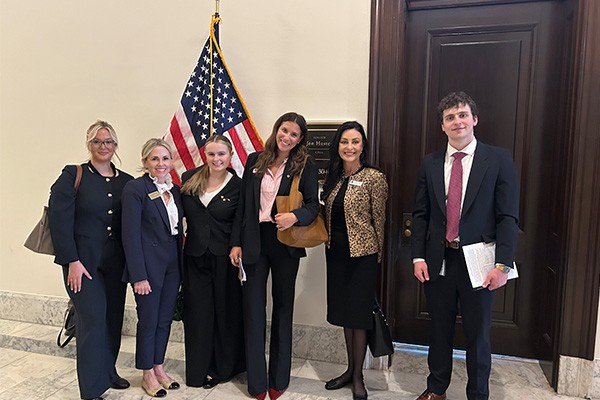 Representing Tri Delta on Capitol Hill were collegiate leaders Mariam Nguyen, Furman; Rayna Handis, Ohio State; Lauren Bergman, Washington State and Liana Hinojosa, Texas A&M/Corpus Christi. They were joined by alumnae Catherine Hernandez-Blades, Louisiana/Lafayette; Quinn Rose Vonder Haar, Drury; and Julie Coffman Doss, Texas A&M.