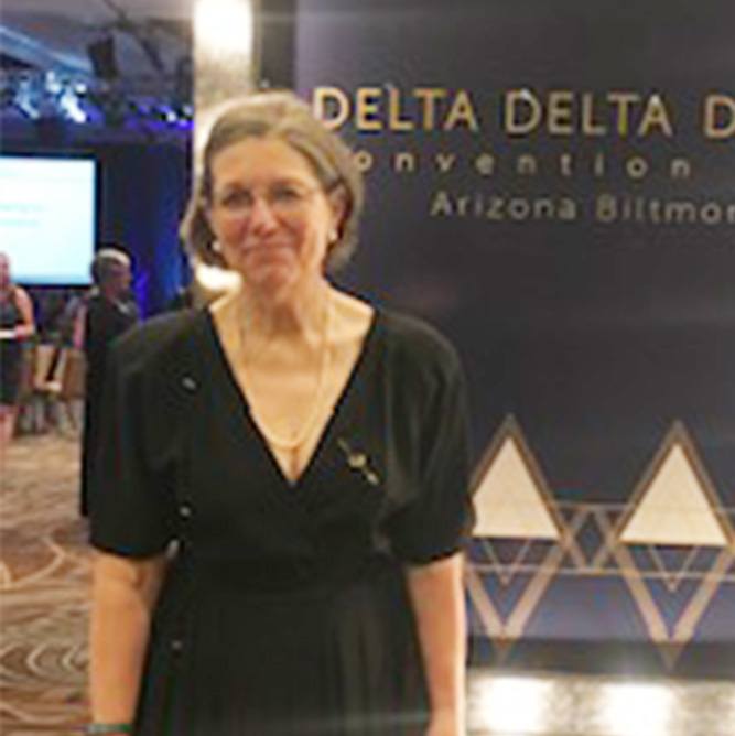 With a background in art education, Lynn currently substitute teaches while finding time to give back to Tri Delta for more than five decades—and it’s easy to see why! It’s in her blood. With a long family line of Tri Deltas—spanning her grandmother, mother, aunts, cousin and even her own daughter, from Northwestern to Wisconsin—Lynn grew up immersed in the sisterhood. Circle Degree was even conducted in her mom’s bedroom! Since the 1970s, Lynn has volunteered in nearly every role imaginable, bringing her energy, experience, and heart to every chapter role she undertakes.